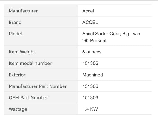 ACCEL Motorcycle 151306 Starter Gear - Big Twin