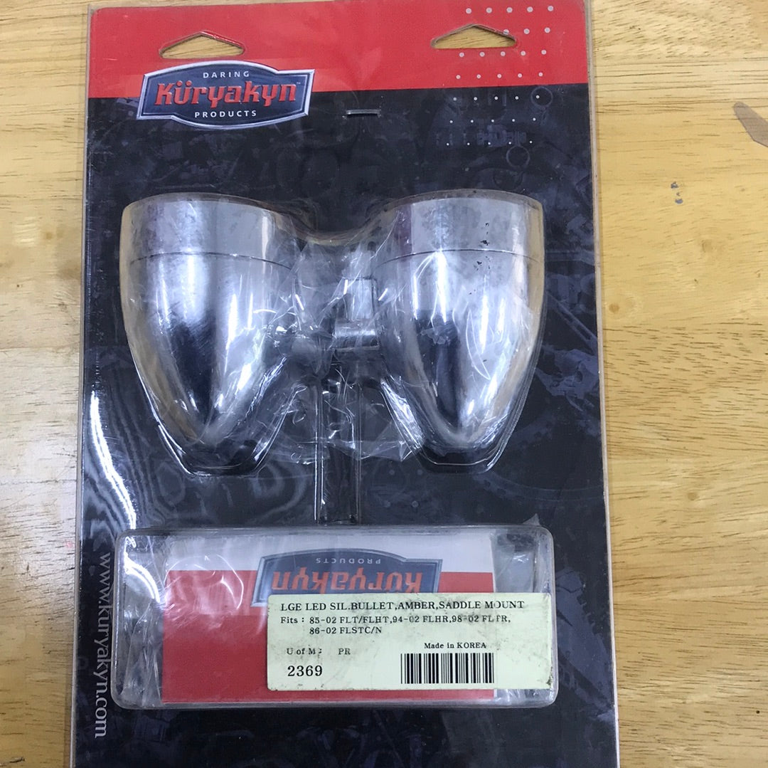 Kuryakyn 2369 large LEDsilver bullet, Amber, saddle mount.
