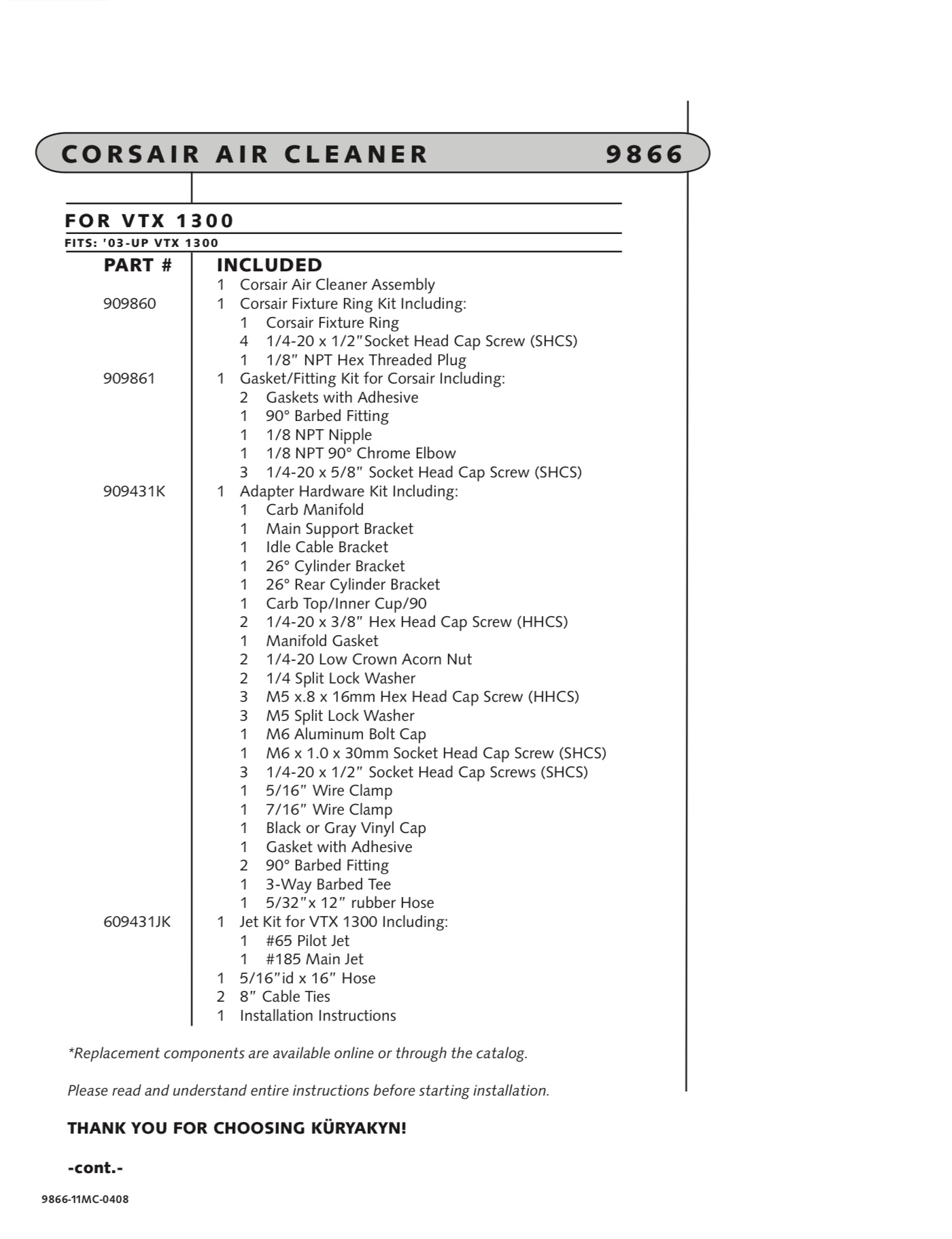 K9866 kuryakyn corsair air cleaner vtx1300