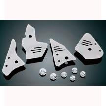 Precision-cut from steel. Polished to a mirror-like finish and then chrome-plated. These Motor Mount Accents pull double duty for you. Cover up the plain, black motor mounts while also filling in some of the “dead space” around the engine. Three of the mounts are slotted, adding style. Covers both front and rear mounts.
