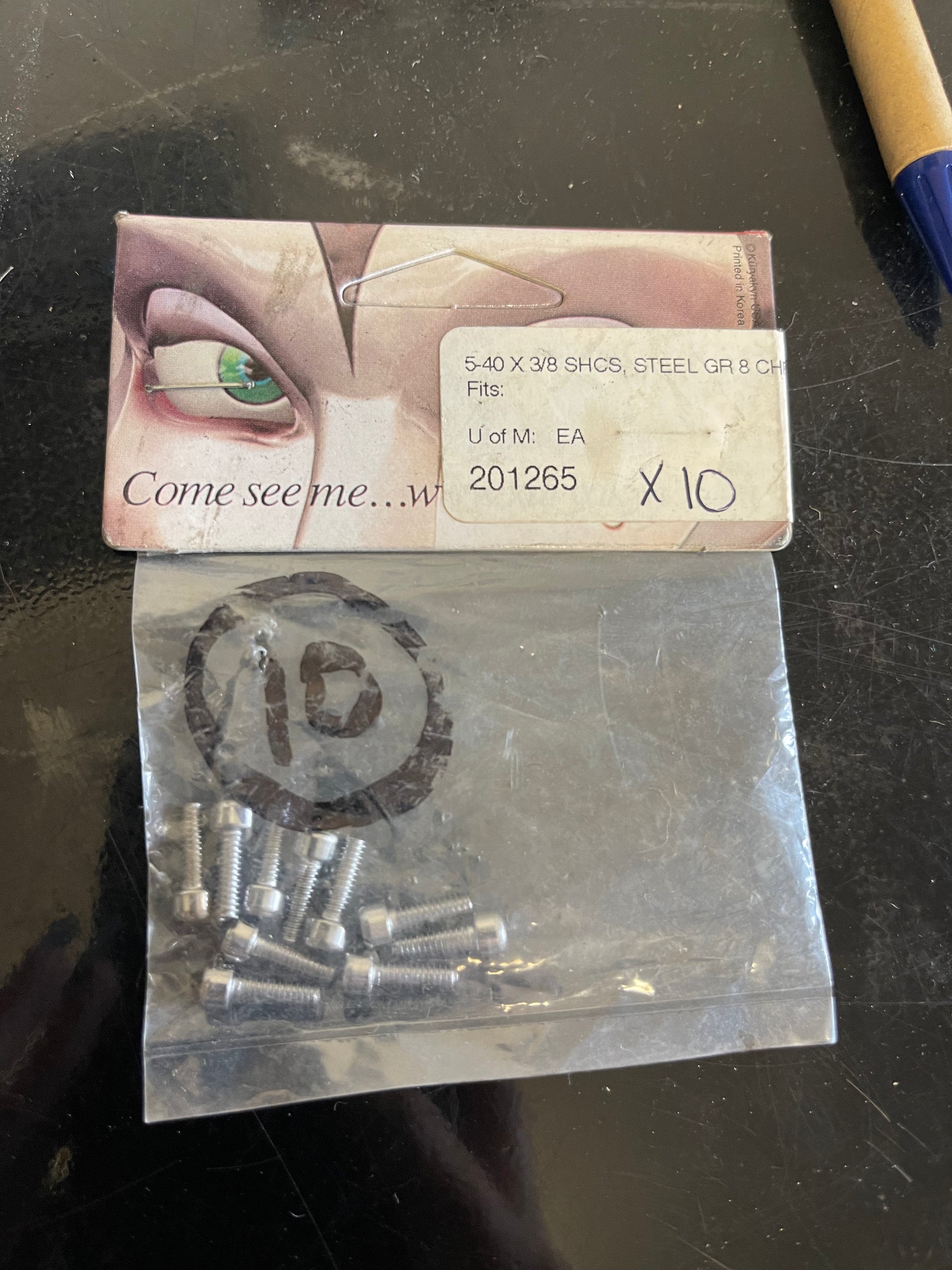 Set of 10x screws for stiletto end caps 5-40 X 3/8 steel gr 8 chrome