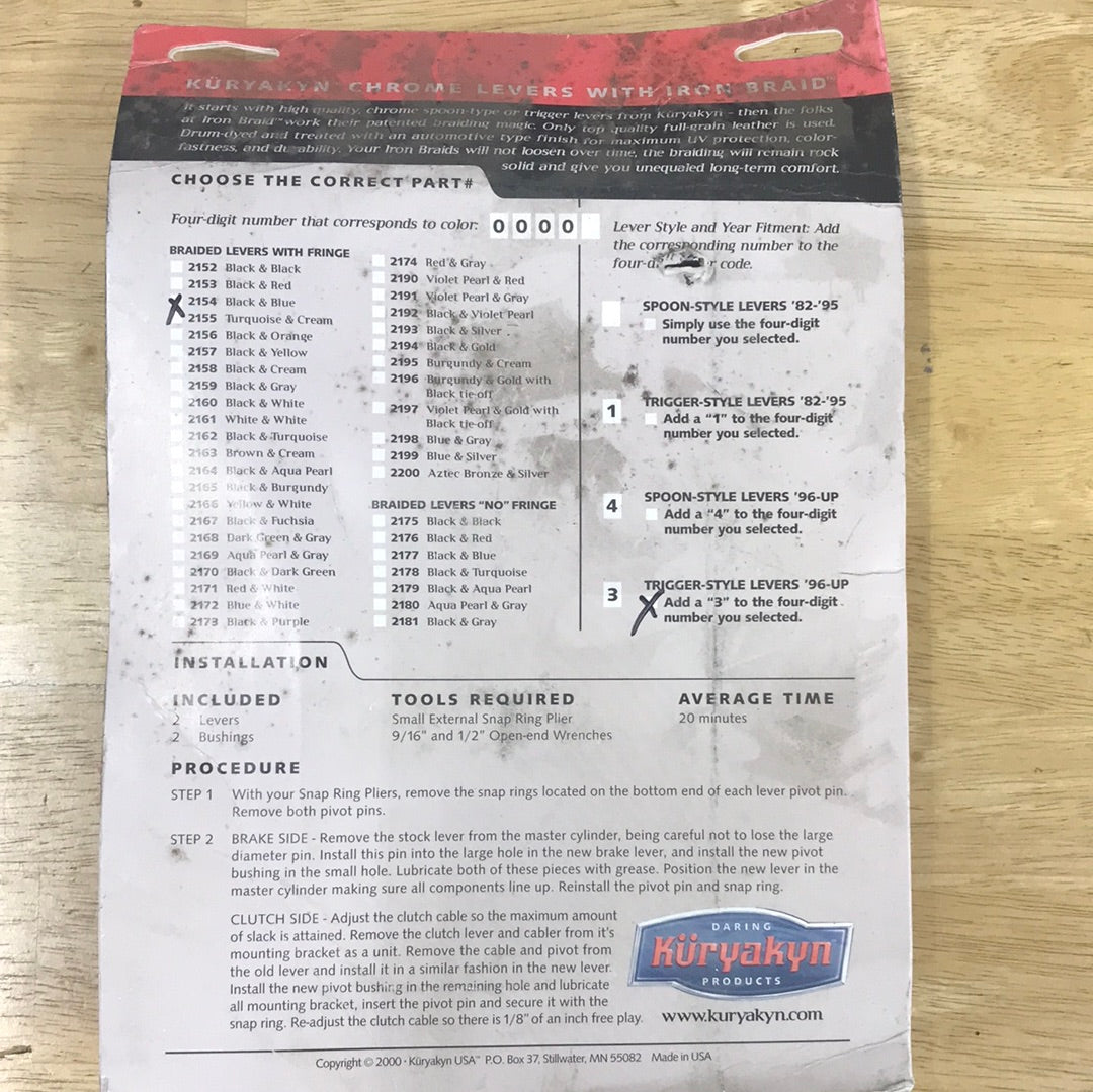 Küryakyn 21543 Iron Braid Braided Levers Black/Blue (pr) Fits: '69-'12 Trigger Style w/Fringe