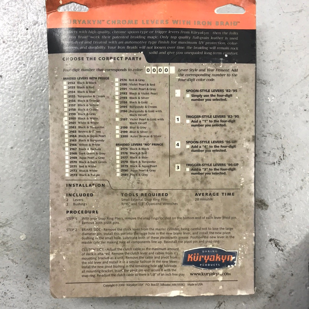 Kuryakyn 2156 chrome levers with iron braid- black and orange