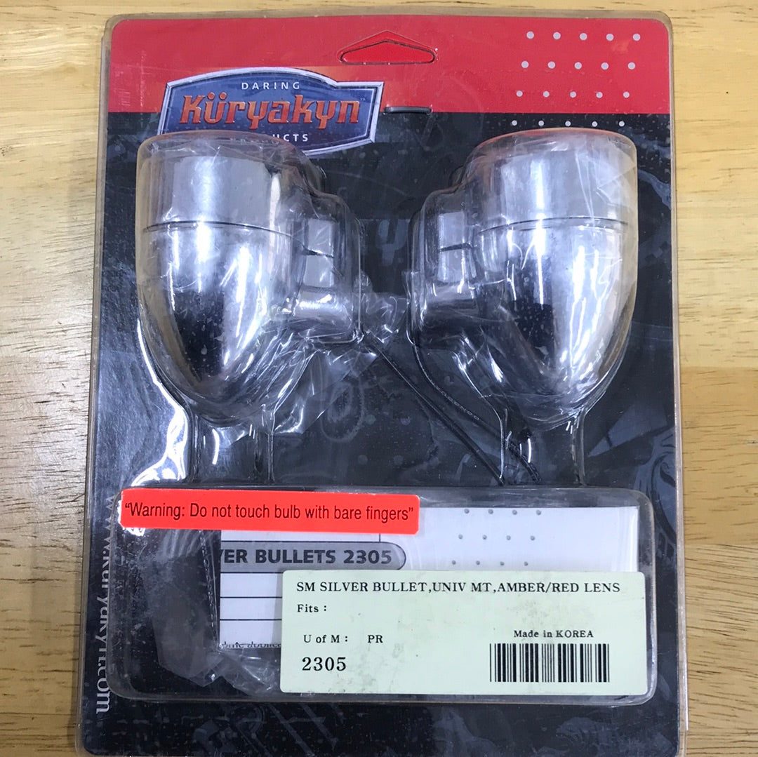 Kuryakyn 2305 Motorcycle Lighting Accessory: Small Halogen Silver Bullets, 3/8"-16 Hollow Mounting Bolt, Chrome, 1 Pair