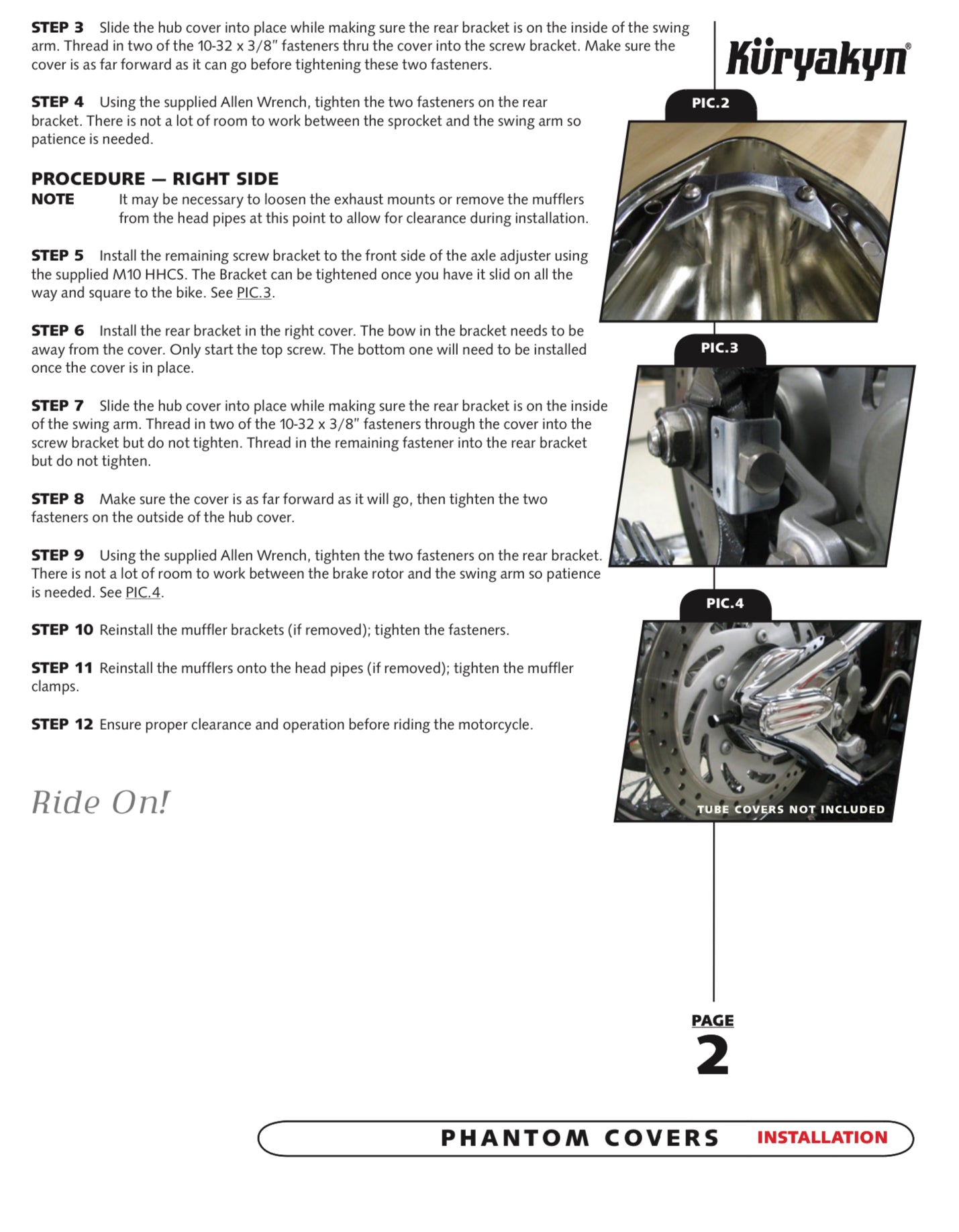 - Note: When checking for appropriate clearance, please remember swing arms move separate from your exhaust mounts; compress and extend suspension for proper clearance